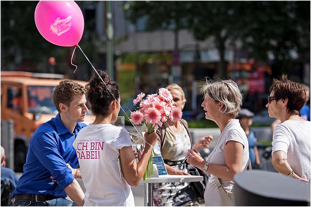 Am 24. Juni 2015 trägt Leipzigs Zentrum das internationale Symbol der Rosa Schleife. Als Auftakt der 35. Jahrestagung der Deutschen Gesellschaft für Senologie wird der Informationstag „Früherkennung Brustkrebs – Ich bin dabei!“ auf dem Marktplatz Leipzig stattfinden. Großes und kleines Laufpublikum wird spontan zum Besucher und erweitert in entspannter Atmosphäre sein Verständnis für Brustkrebs. Aufklärung mitten im öffentlichen Raum – fernab vom weißen Kittel und sterilen Krankenhausfluren. Vor Ort bieten Professoren und Ärzte lokaler Kliniken und Institutionen der Bevölkerung ein breites Informationsprogramm mit Möglichkeiten und Erklärungen zu Früherkennungstests, Gerätschaften, Vorgehensweisen und vielem weiteren an.